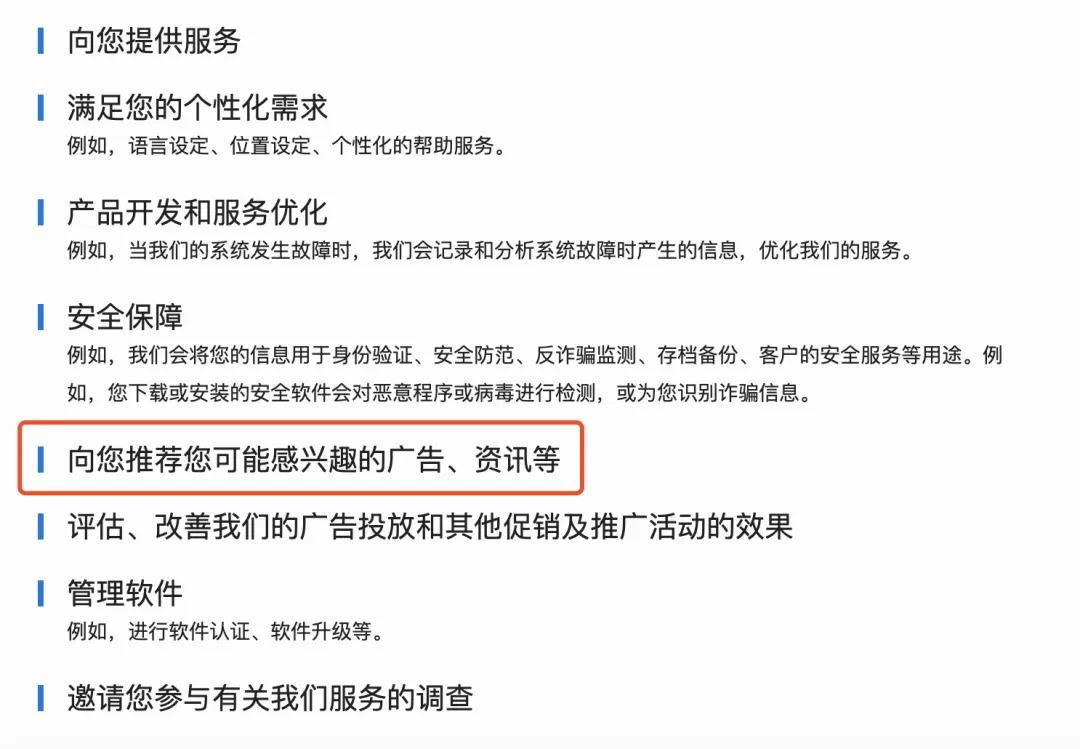 (截图来自某信平台的隐私政策)